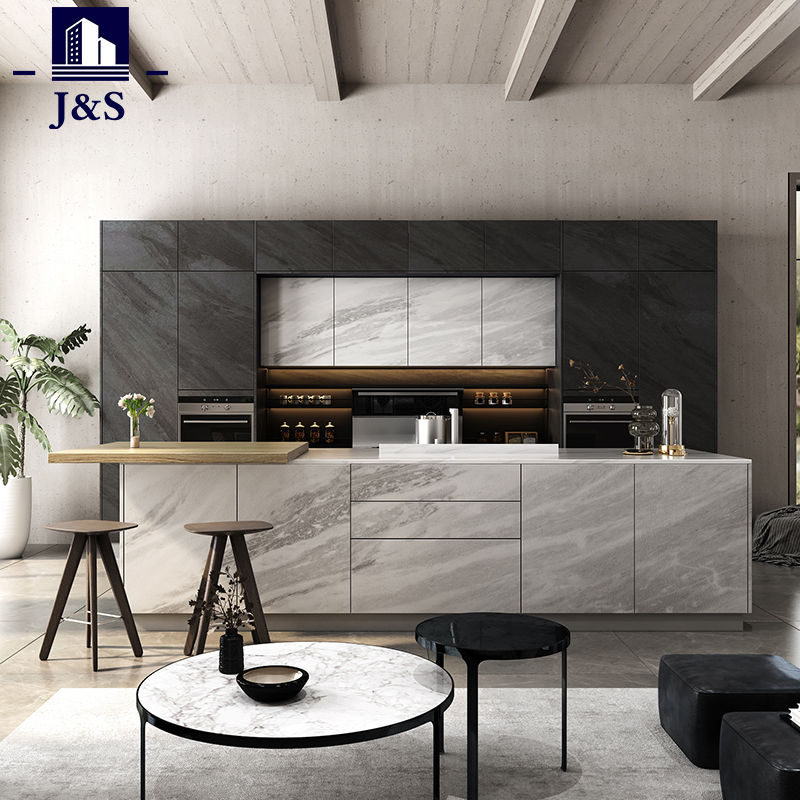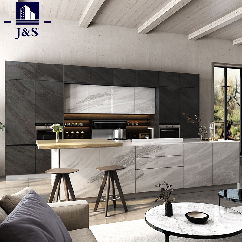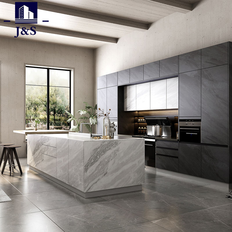 تقوم J&S بتوريد New Zealand Sage Door 2 Pack Paint Kitchen Doors Kitchen Maker. هذا هو تصميم خزانة على الطراز الصناعي، جنبًا إلى جنب مع ألواح الأبواب ذات الملمس الحجري وأسطح العمل الرخامية، يُظهر النمط العام مستوى منخفض وجوًا، مما يمنح الناس شعورًا بأنهم في الداخل طبيعة.